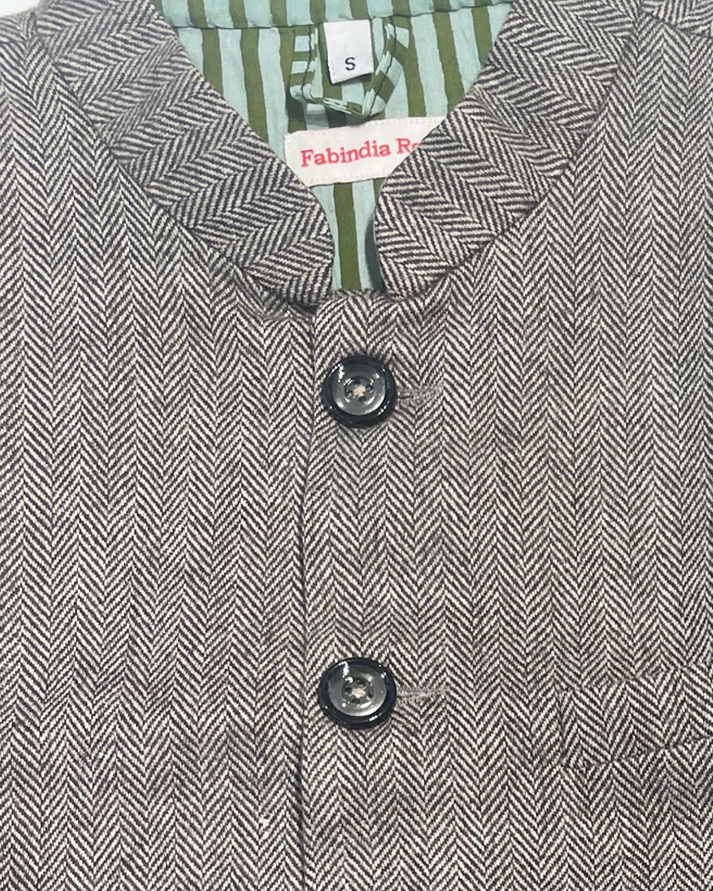 This fantastic warm wool waist coat , "Nehru Jacket", is fitted, lined with colorful stripes and it suits people of small and medium body type. The Fitted Nehru Jacket is the shorter version of our regular Nehru Jacket.It is ideal for Autumn, Winter and Spring. Our fabrics and designs are unique and may display irregularities due to craftsmanship. We recommend dry cleaning. Other colors are available , please write to fabindiaroma@gmail.com |
