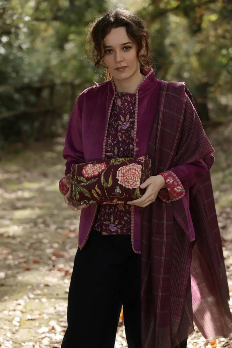 Shawls: 80% wool & 20% silk. Woven in Kashmir. The fabric is soft and warm. Ideal for the winterThese shawls are available in floral and geometric prints and vibrant colors. This style has two different prints on the sides. We recommend washing in cold water.