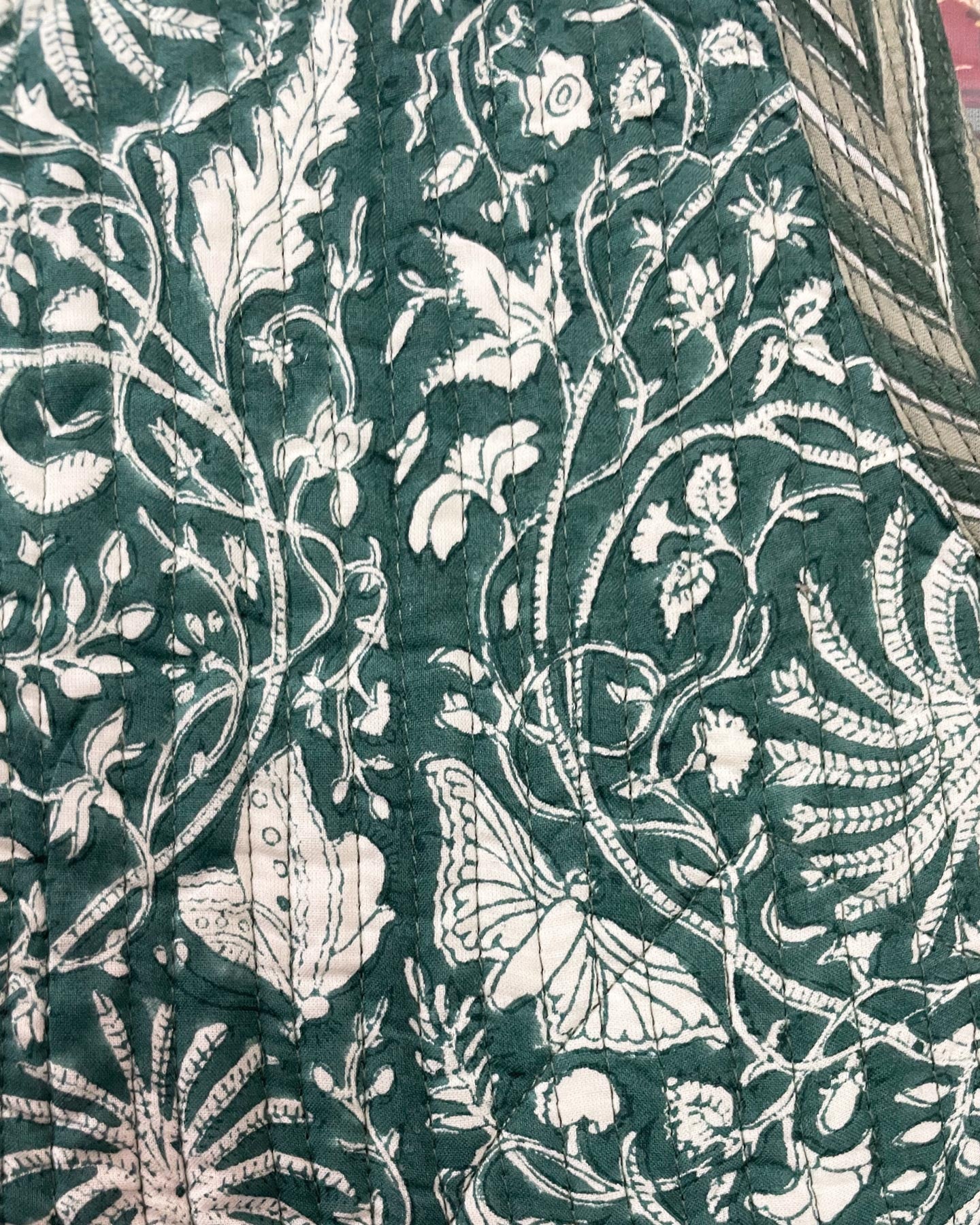 Our fabrics and designs are unique and may display irregularities due to craftsmanship. We recommend hand and cold washing, no dryer.