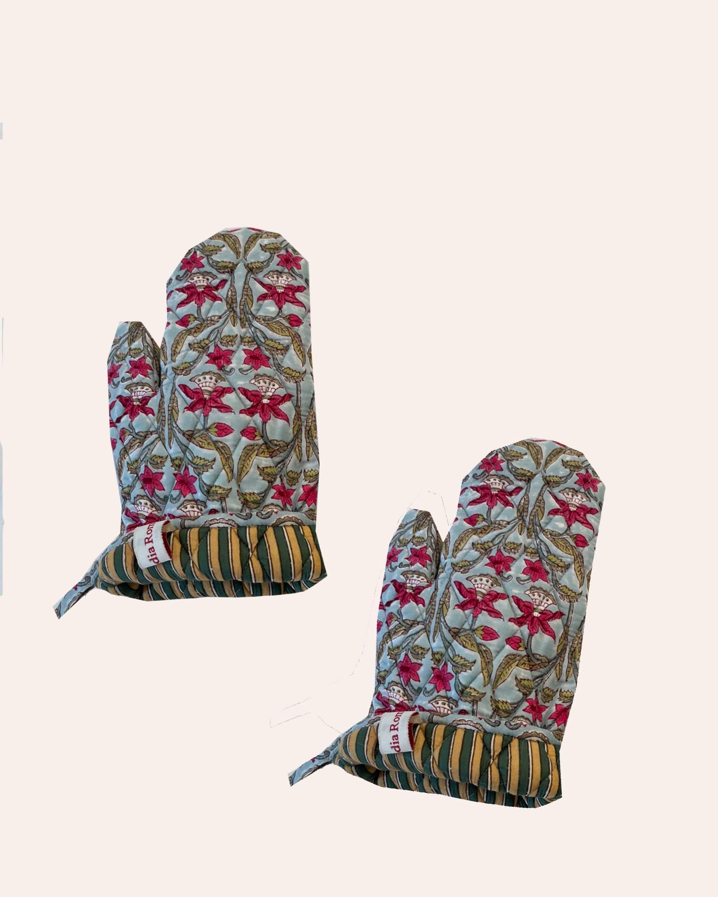 Kitchen gloves (2 pcs) made of 100% printed , quilted cotton with pure cotton filling. Our fabrics and designs are unique and may display irregularities due to craftsmanship. We recommend gentle washing and no dryer . |