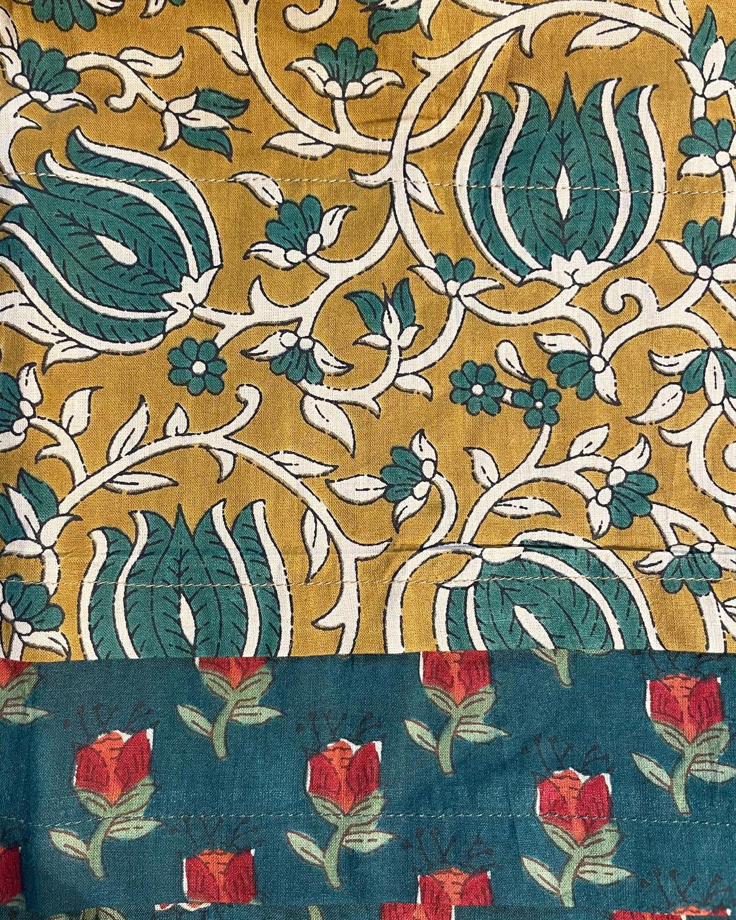 Our fabrics and designs are unique and may display irregularities due to craftsmanship. We recommend hand and cold washing, no dryer.