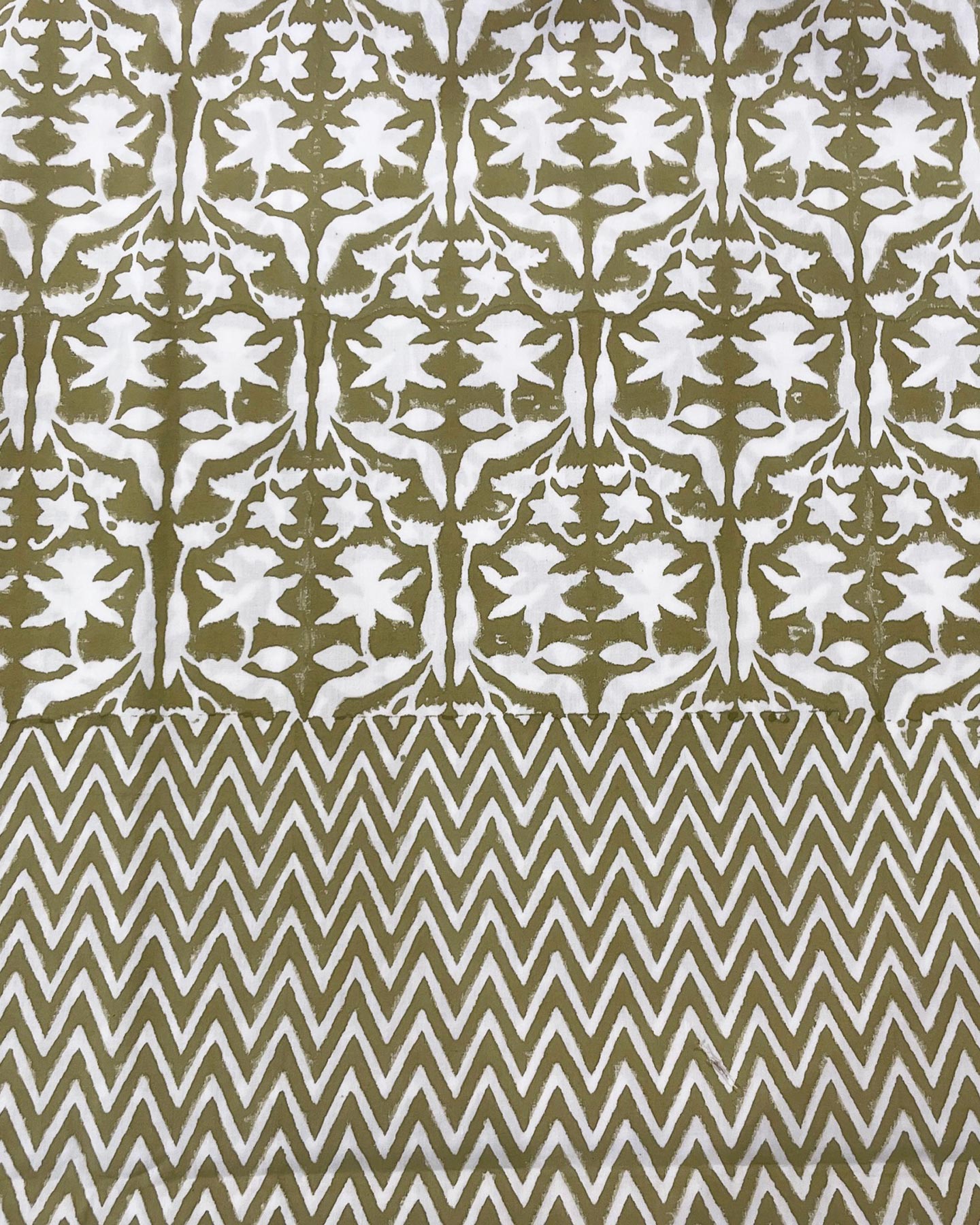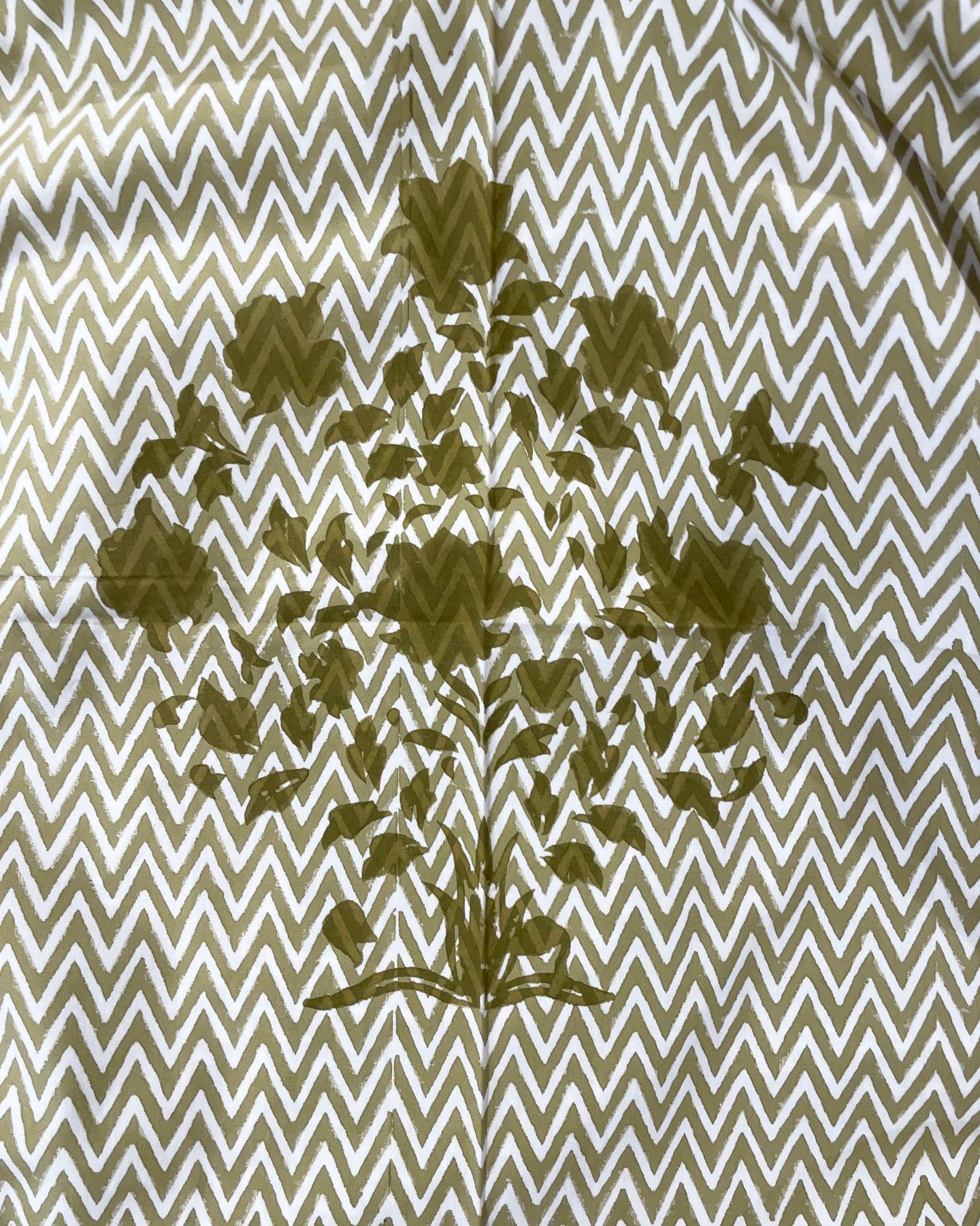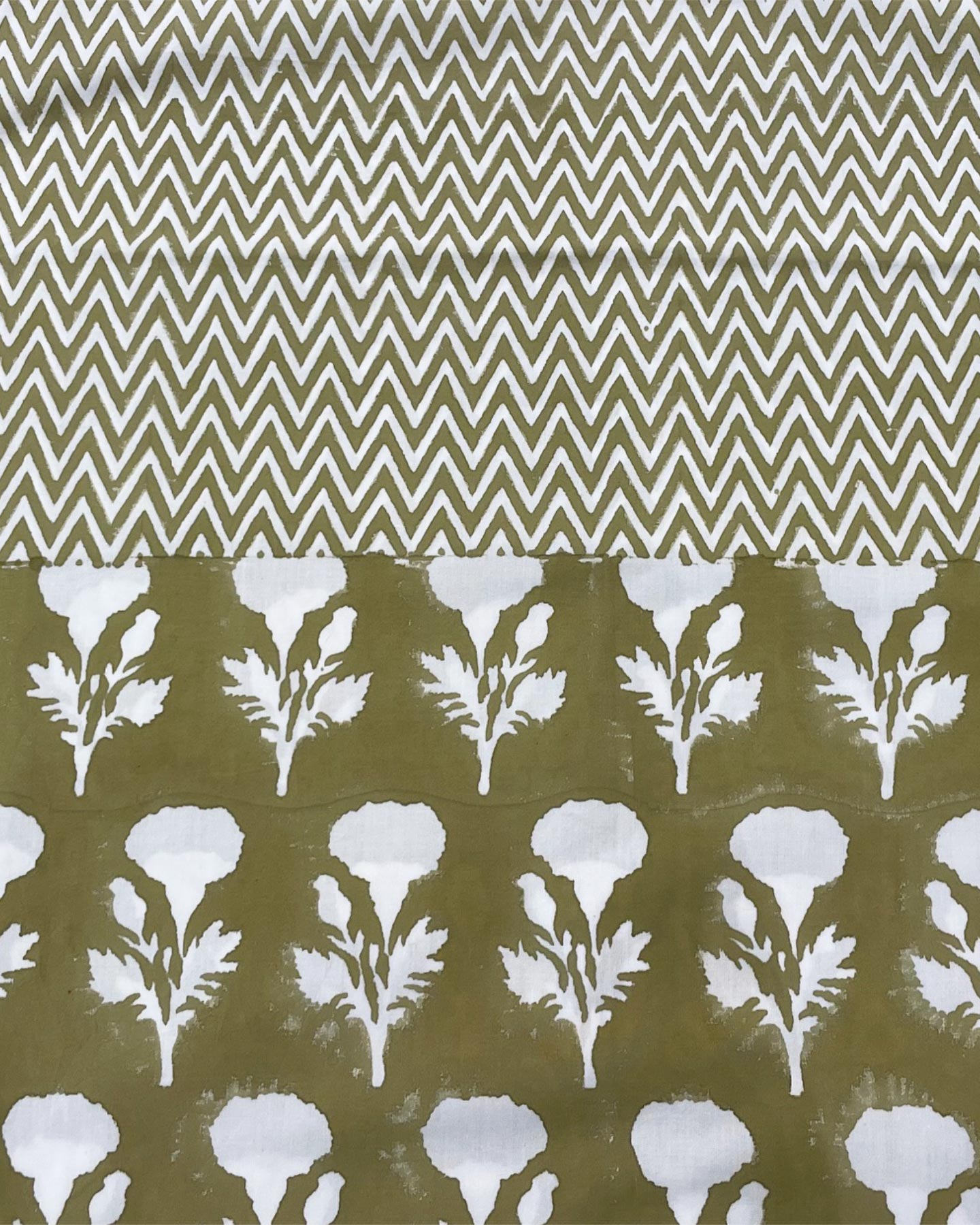 Telo di puro cotone stampato a mano con la tecnica del block print, ogni stampo di legno viene intarsiato a mano da artigiani esperti. Questi teli si prestano a vari utilizzi: tovaglia per la tavola, copriletto e copri divano. La varietà dei motivi stampati consente di arredare in modo originale la propria casa, modulando a propria sensibilità gli abbinamenti di colore. Il nostro tessuto è unico nel suo genere e presenta delle irregolarità dovute alla lavorazione artigianale.