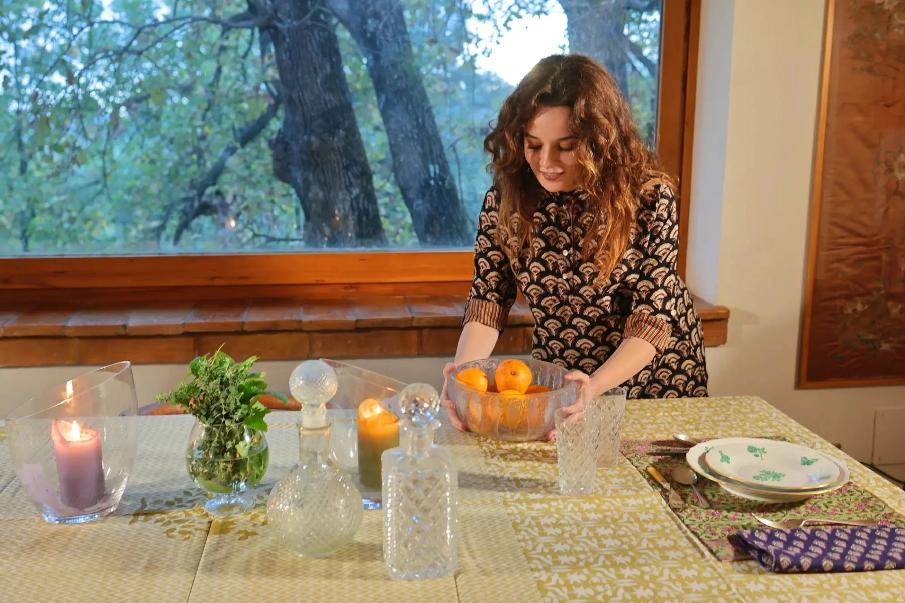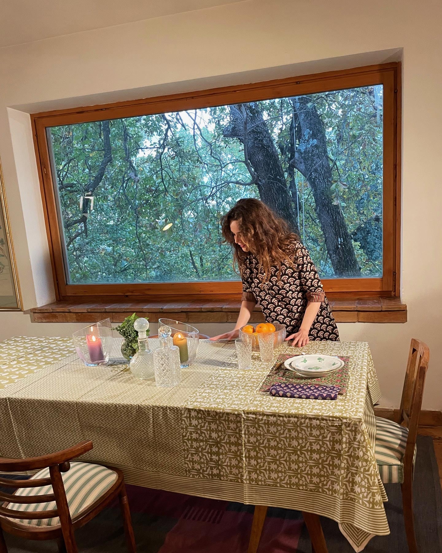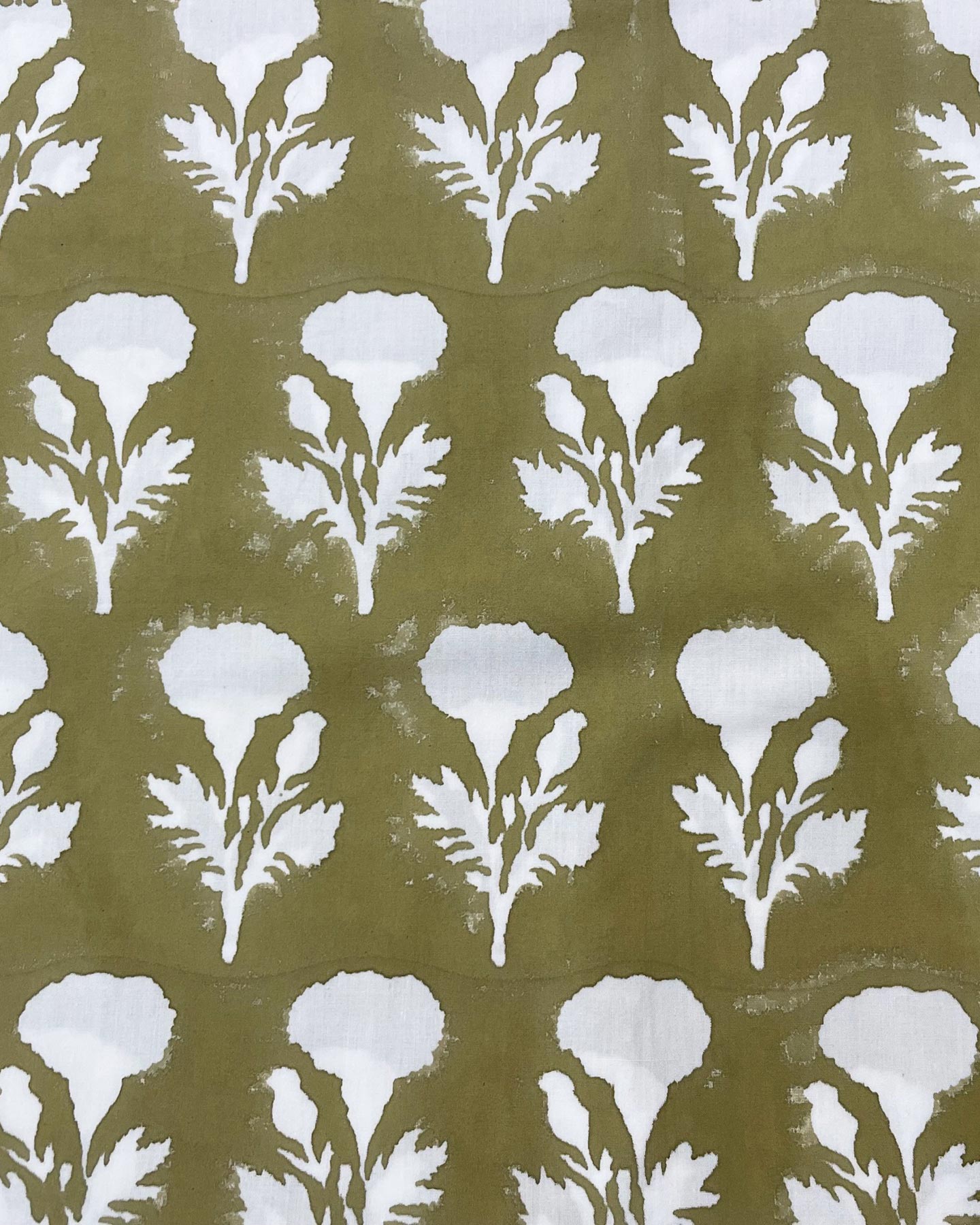 Telo di puro cotone stampato a mano con la tecnica del block print, ogni stampo di legno viene intarsiato a mano da artigiani esperti. Questi teli si prestano a vari utilizzi: tovaglia per la tavola, copriletto e copri divano. La varietà dei motivi stampati consente di arredare in modo originale la propria casa, modulando a propria sensibilità gli abbinamenti di colore. Il nostro tessuto è unico nel suo genere e presenta delle irregolarità dovute alla lavorazione artigianale.
