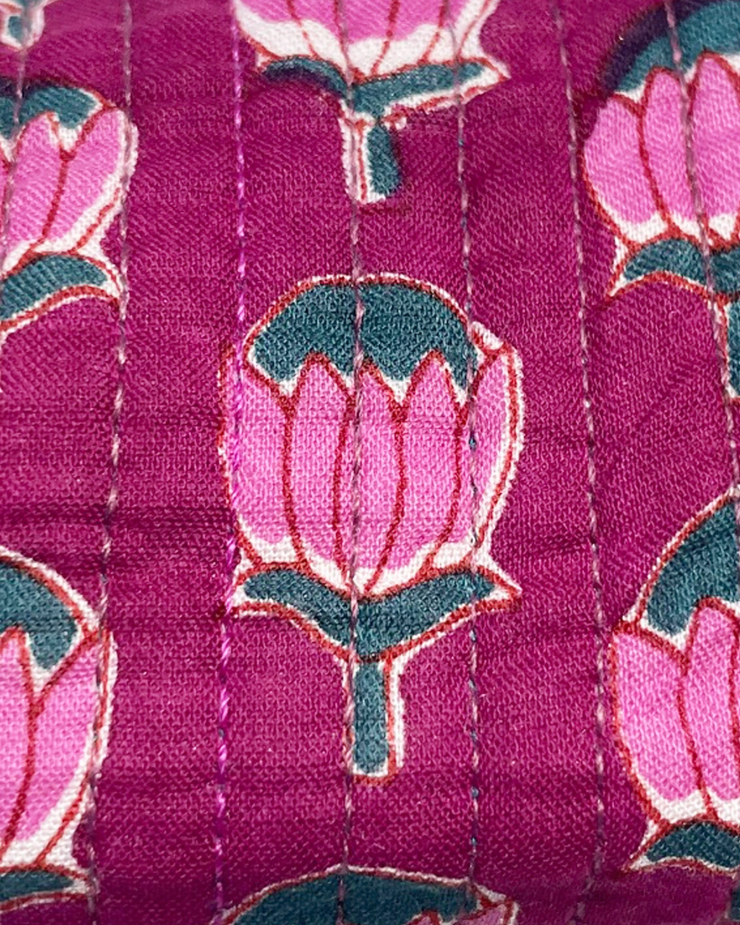 Quilted cotton colorful case lined with cotton printed fabric. This beautiful case is perfect for pencils, pens, keys and any other small object . The pencil holder is ideal for a small gift, very useful to keep insided your bag or on your desk.Our fabrics and designs are unique and may display irregularities due to craftsmanship. Wash in cold water, no dryer. • Size 21 x 6 x 6 cm |