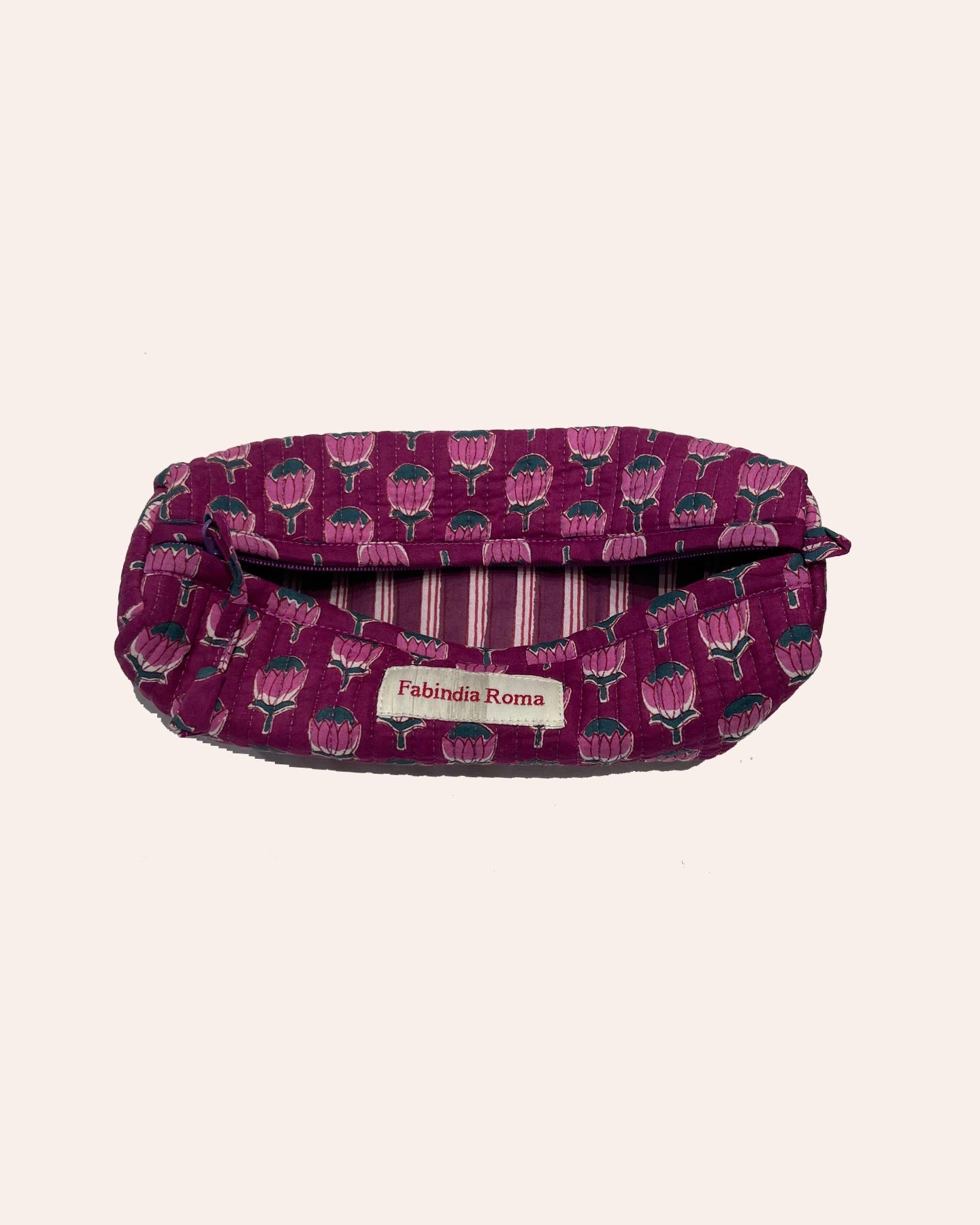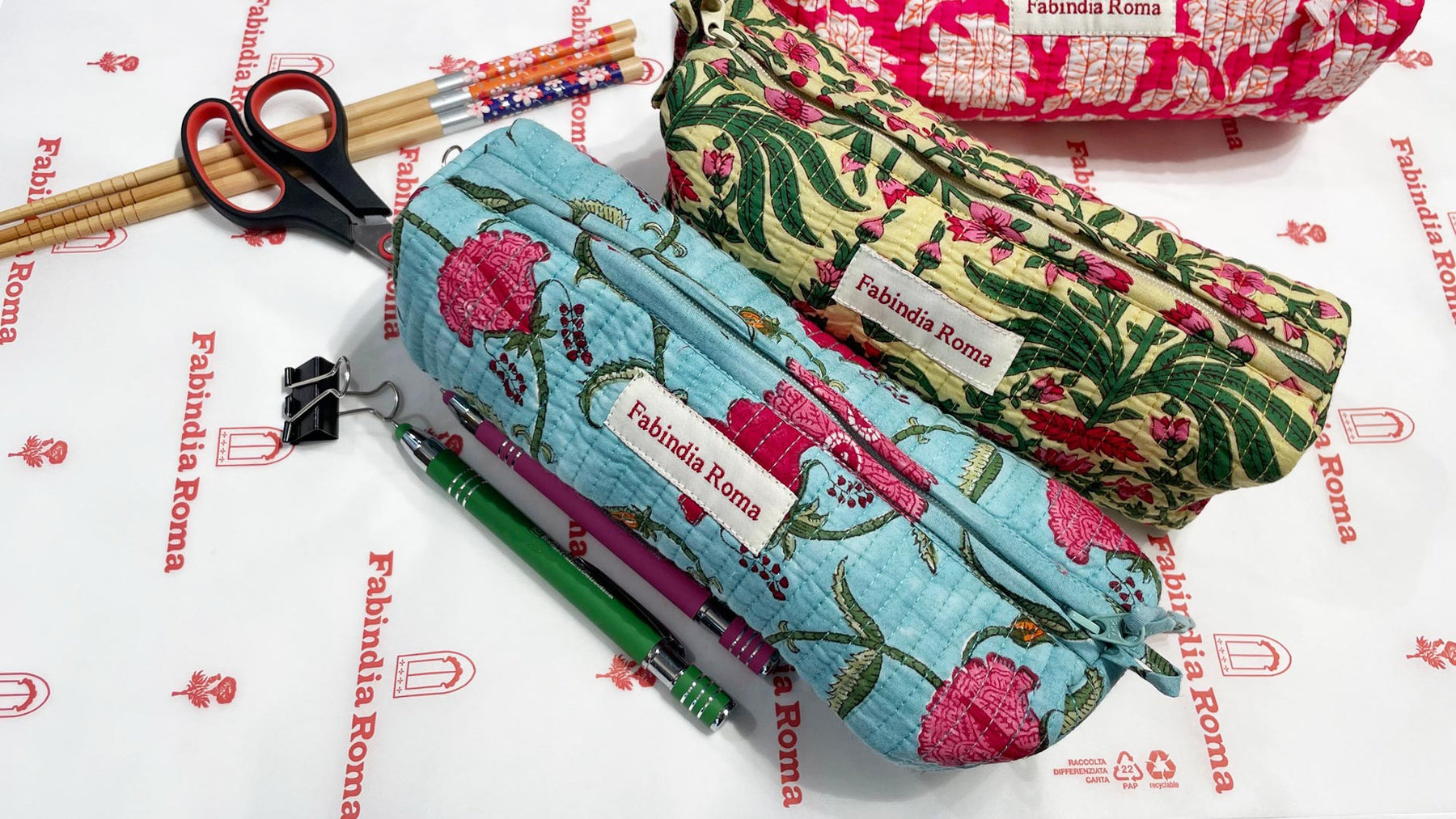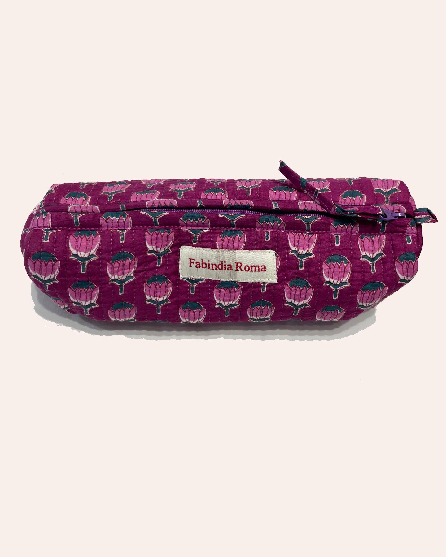 Astuccio colorato trapuntato di cotone dalla forma allungata per contenere matite, penne, chiavi e oggetti vari. Foderato con materiale tessuto di cotone stampato.E' ideale per fare un piccolo regalo, molto utile da tenere in borsa e sulla scrivania. Il nostro tessuto è unico nel suo genere e presenta delle irregolarità dovute alla lavorazione artigianale. Lavaggio a freddo, no asciugatrice.