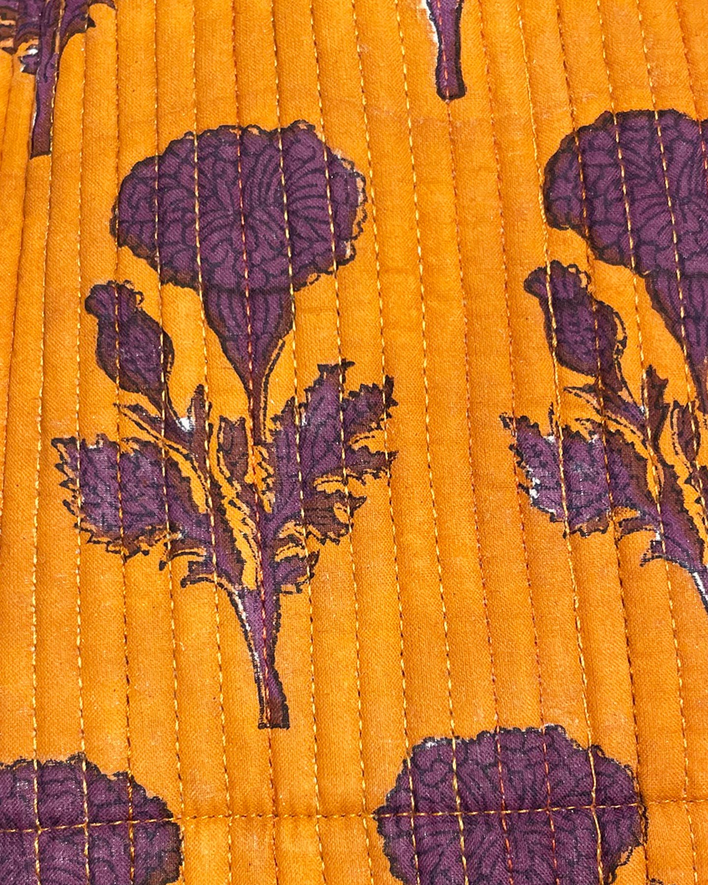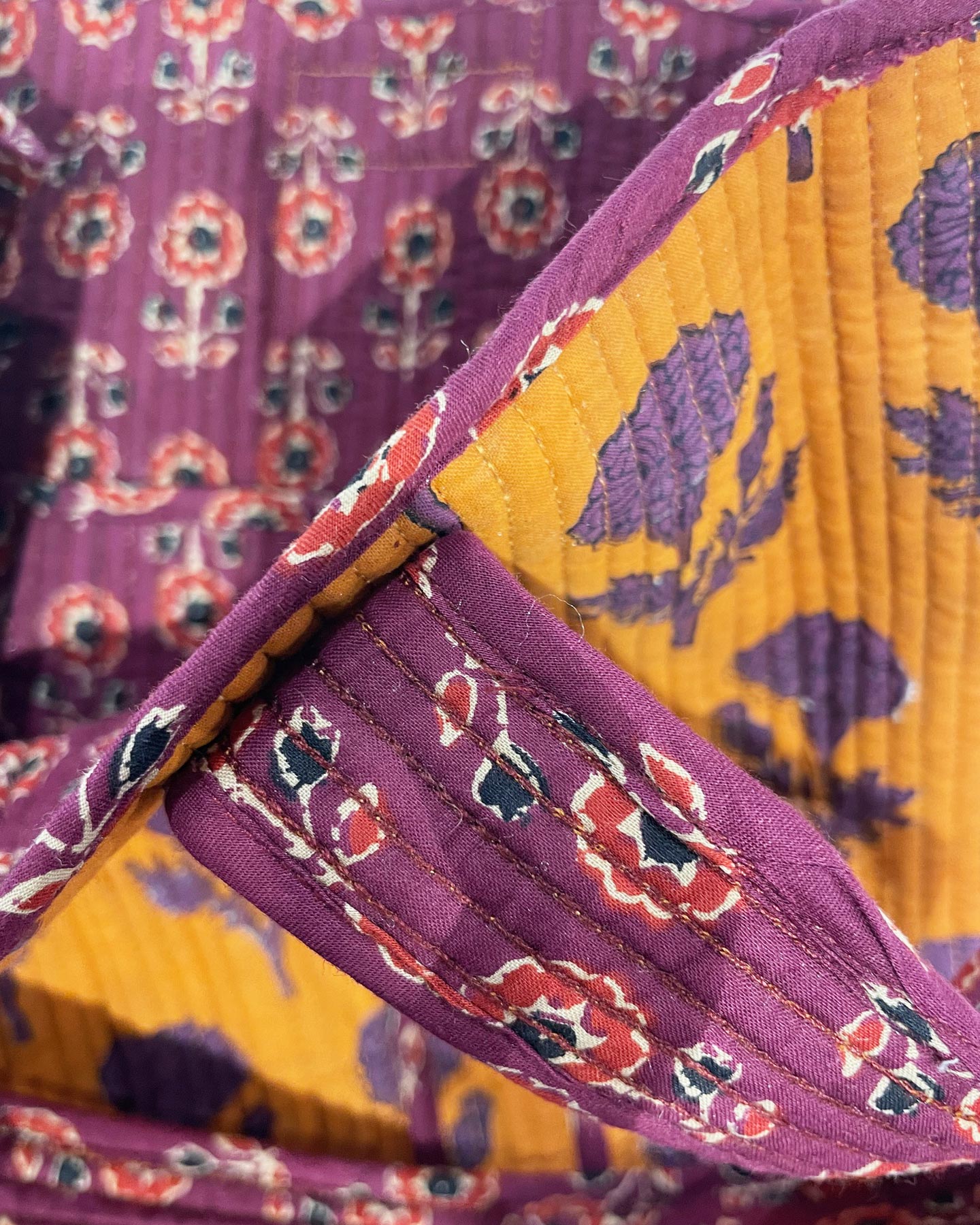 This quilted cotton bag is lined with a different printed fabric  and it has a small pocket inside. The Shopper Roma is a fun bag, ideal for every occasion, in the city, by the beach or for a pic nic in the country side. Our fabrics and designs are unique and may display irregularities due to craftsmanship. We recommend washing in cold water, no dryer.