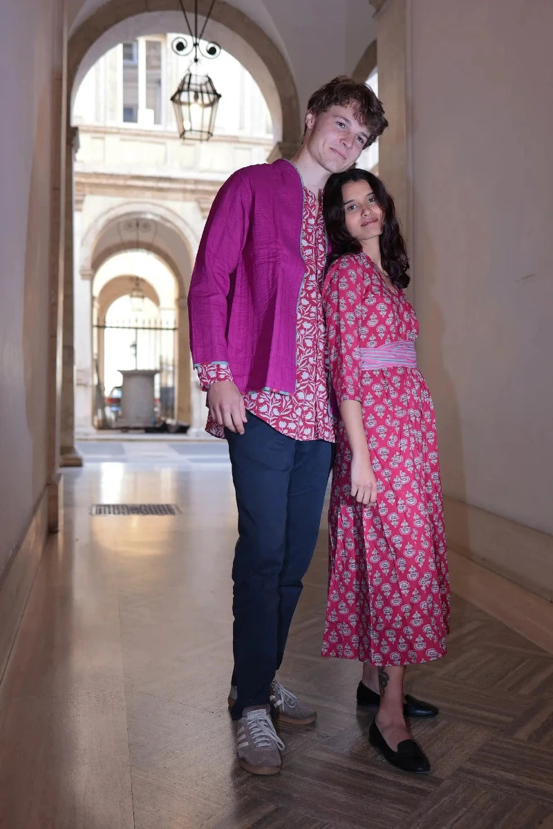 Come tutti i nostri capi, il tessuto e il modello è unico nel suo genere e presenta delle irregolarità dovute alla lavorazione artigianale. Si consiglia il lavaggio a freddo, no asciugatrice.
